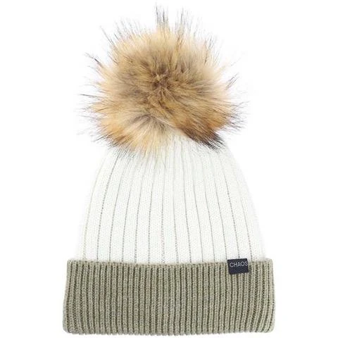 - Wide rib eco merino beanie with contrast cuff with faux-fur pom