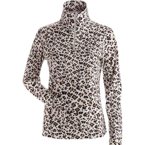 ¼ zip T-neck in an all over leopard print.