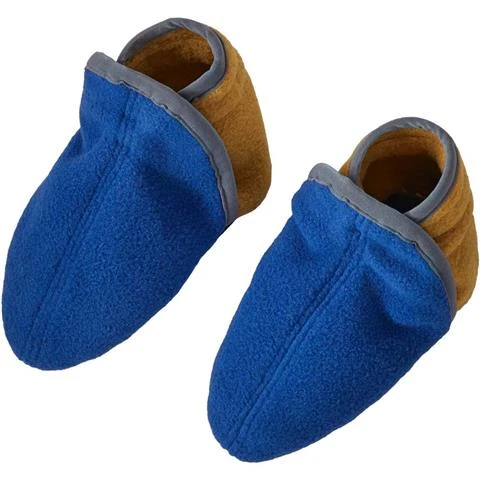 - Warm 100% recycled polyester double-faced fleece in upper booties; soles feature a nonskid blend of nylon/polyurethane/spandex jersey